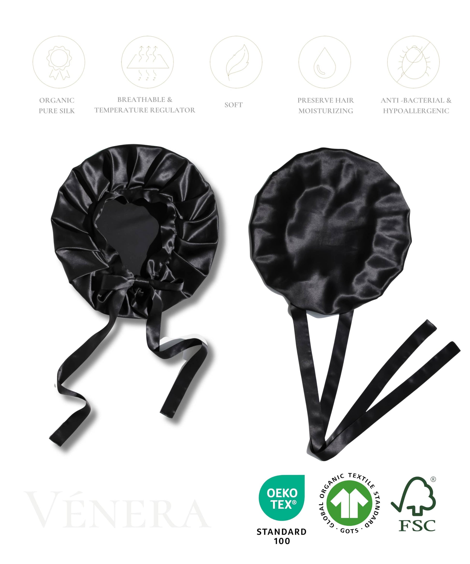 100% Organic Pure Silk Hair Bonnet - Black