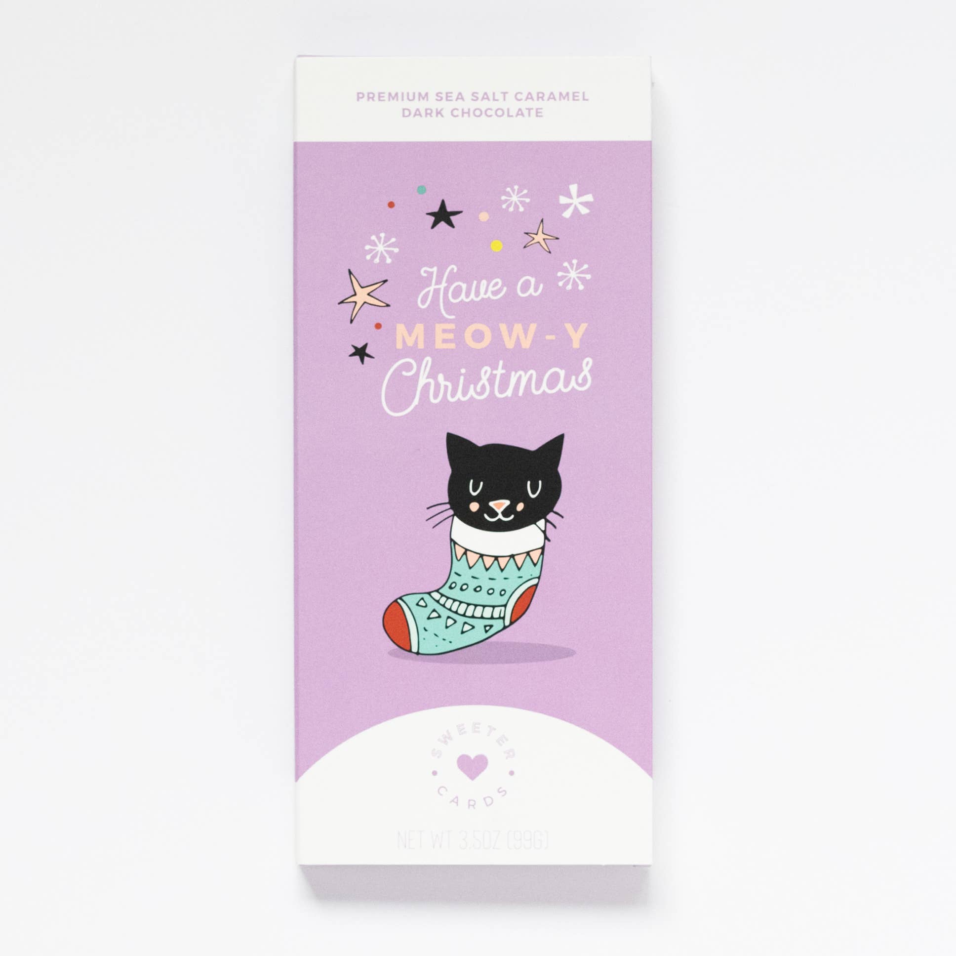 Sweeter Cards are the perfect Christmas gift this holiday season! We are a chocolate bar and greeting card all-in-one! Inside each gift is a sea salt caramel dark chocolate bar! This holiday design is perfect for cat lovers and makes a great stocking stuffer.