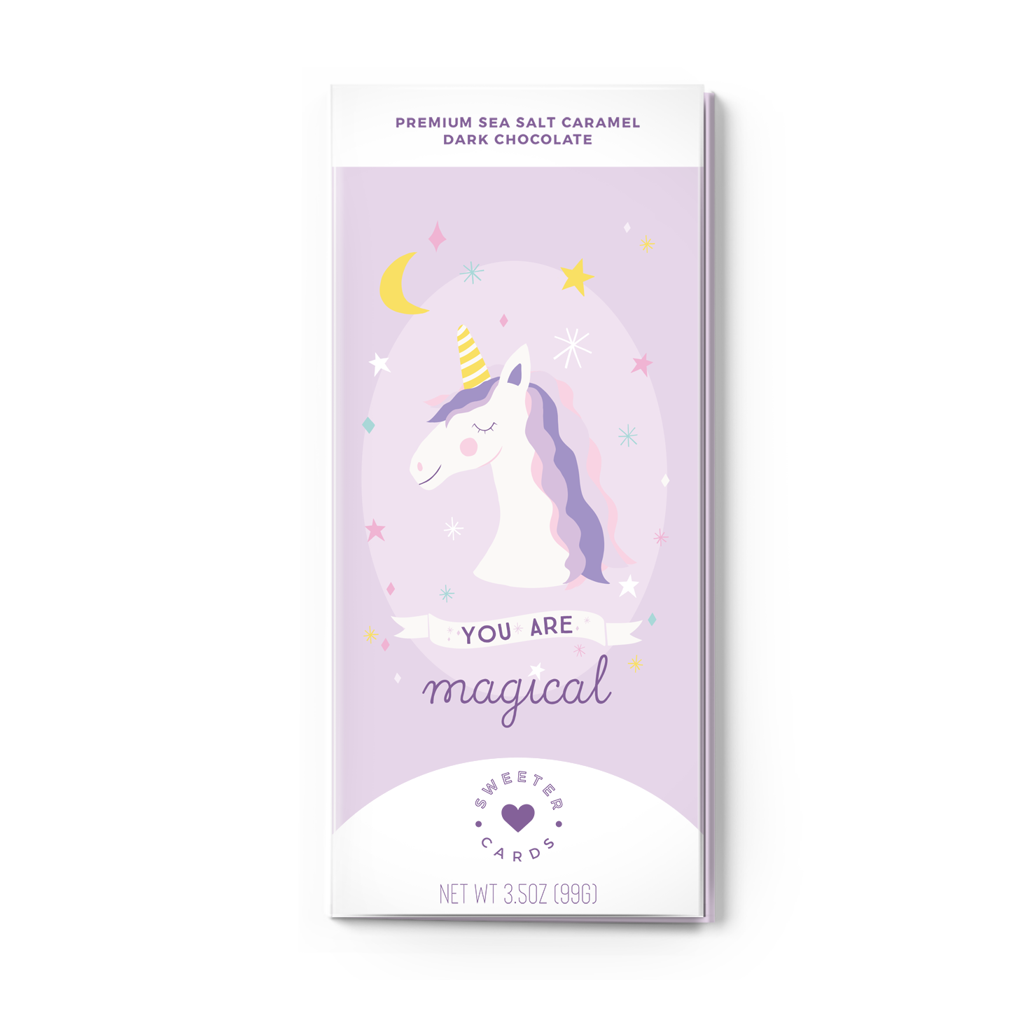 Sweeter Cards is a stationery line of chocolate bar greeting cards with sweet and snarky messages on the outside and dark chocolate sea salt caramel on the inside!
